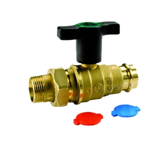 Kulový kohout plnoprůtokový s prodlouženou vrtulkou do izolací s vypouštěním, jeden lisovací nátrubek a šroubení, s černými O-kroužky. Speciální provedení pro rozvody sanity dle normy DIN 13828.